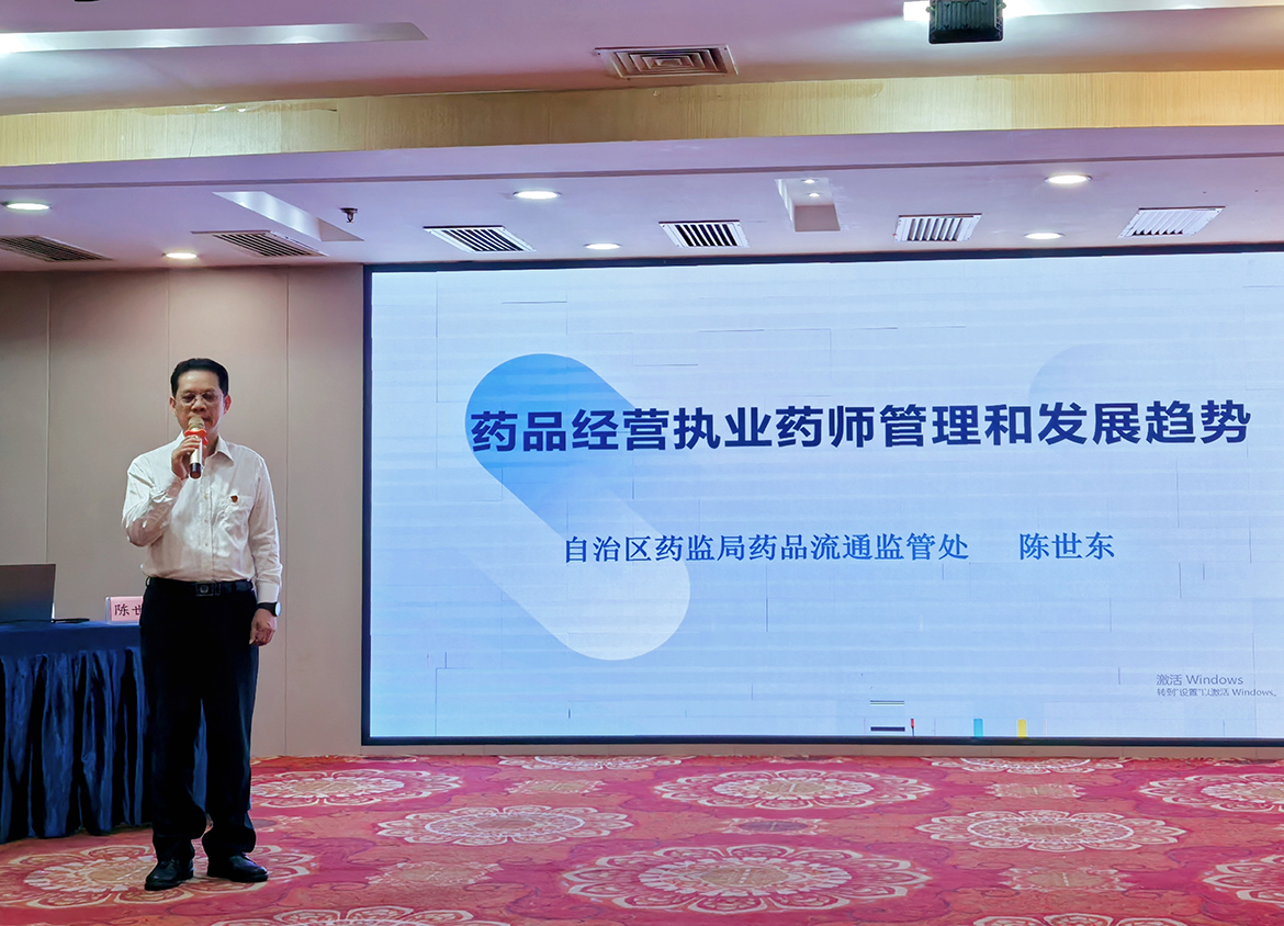 活動(dòng)特邀多位權(quán)威專家進(jìn)行專題授課。自治區(qū)藥監(jiān)局藥品流通監(jiān)管處處長(zhǎng)陳世東以《藥品零售企業(yè)執(zhí)業(yè)藥師管理和發(fā)展趨勢(shì)》為題,深度剖析行業(yè)政策導(dǎo)向與規(guī)范化路徑,強(qiáng)調(diào)執(zhí)業(yè)藥師在專業(yè)藥房建設(shè)中的核心作用。